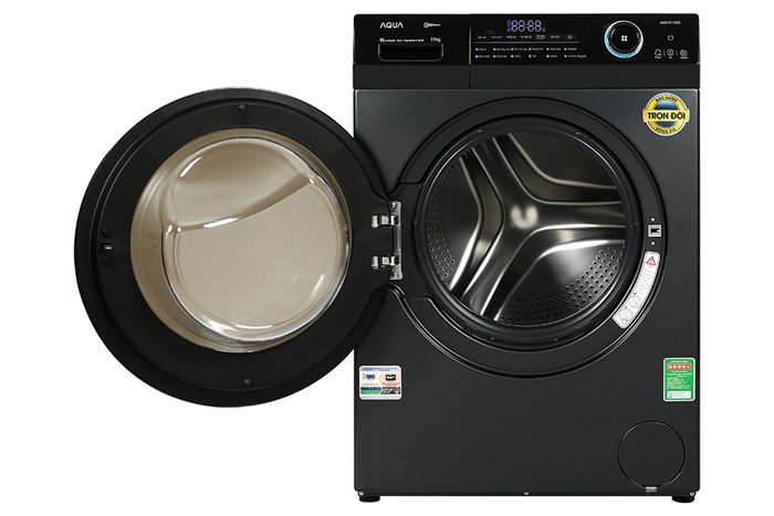 Máy giặt Aqua Inverter 11 kg AQD- D1102G BK thiết kế kiểu máy giặt lồng ngang hiện đại, lồng giặt với kích thước lớn (525 mm) giúp nâng cao hiệu quả giặt, giảm xoắn rối quần áo. Ngoài ra, chế độ giặt sử dụng hơi nước để diệt khuẩn quần áo rất thích hợp cho những người có làn da nhạy cảm, dễ mẩn đỏ.