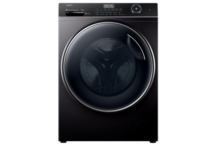 - Máy giặt Aqua Inverter 12 kg AW12-B4959U1K(B) là máy giặt lồng ngang - cửa trước với thiết kế màu đen chủ đạo, mang lại cảm giác sang trọng, phù hợp với nhiều không gian đặt để.