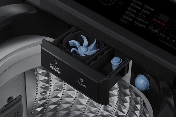 Với dung tích 19kg, máy giặt đáp ứng nhu cầu giặt giũ lớn, phù hợp cho gia đình đông người hoặc cần giặt các vật dụng lớn như chăn mền. Thiết kế cửa trên tiện lợi cùng màu sắc đen sang trọng, máy giặt không chỉ là thiết bị gia dụng mà còn là điểm nhấn thẩm mỹ cho không gian sống.