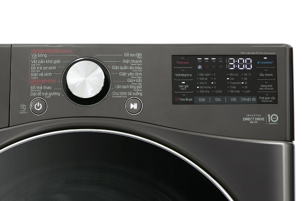 - Chương trình giặt ngừa dị ứng: Sử dụng công nghệ hơi nước Steam giúp loại bỏ đến 99.9% vi khuẩn và các tác nhân gây dị ứng khác, đảm bảo an toàn cho làn da người mặc và giảm thiểu hiện tượng nhăn nhúm sau khi giặt nhằm tiết kiệm thời gian ủi đồ cho người dùng.