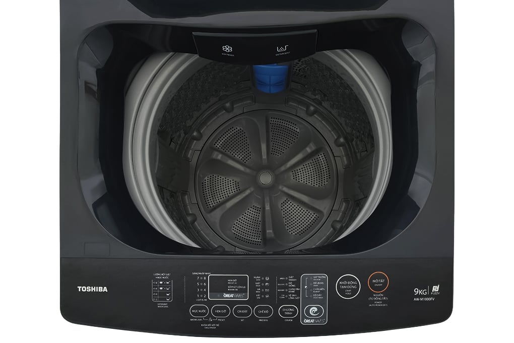 - Máy giặt Toshiba 9 kg AW-M1000FV(MK) thuộc kiểu máy giặt lồng đứng với chất liệu vỏ máy làm bằng kim loại sơn tĩnh điện có độ bền tốt, giảm trầy xước và được thiết kế màu đen nên dễ dàng phối hợp với các nội thất khác trong khu vực đặt máy của gia đình.