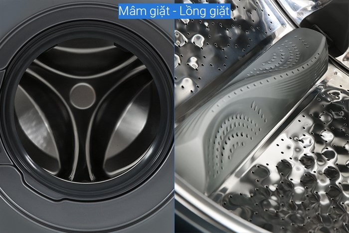 - Lồng giặt bằng thép không gỉ nhằm ngăn ngừa sự phát triển của vi khuẩn có hại, giúp quần áo giặt sạch hơn và cải thiện tuổi thọ của máy giặt.