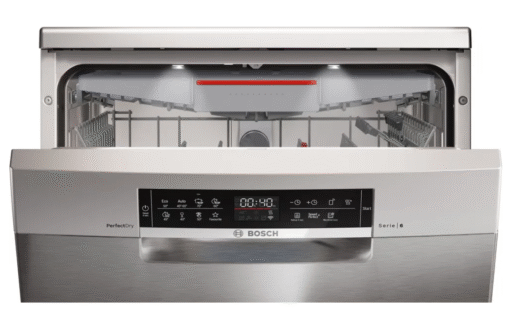 Đặc biệt, máy rửa bát Bosch thiết kế đèn LED chiếu sáng trong khoang rửa giúp người dùng dễ dàng nhìn rõ bên trong, rất hữu ích khi đặt bát đĩa vào máy hoặc lấy ra sau khi rửa.