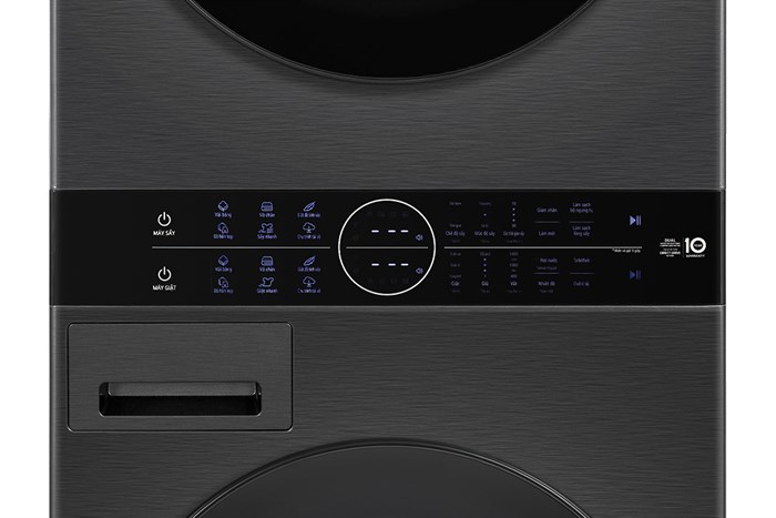 - Bảng điều khiển cảm ứng chỉ dẫn song ngữ Anh - Việt thân thiện, đi kèm màn hình hiển thị rõ ràng các thông số cho bạn tùy chỉnh các chương trình linh hoạt, chuẩn xác. Thiết kế bảng điều khiển ở vị trí chính giữa thân máy, vừa tầm với của người dùng cho bạn thao tác dễ dàng, thoải mái.