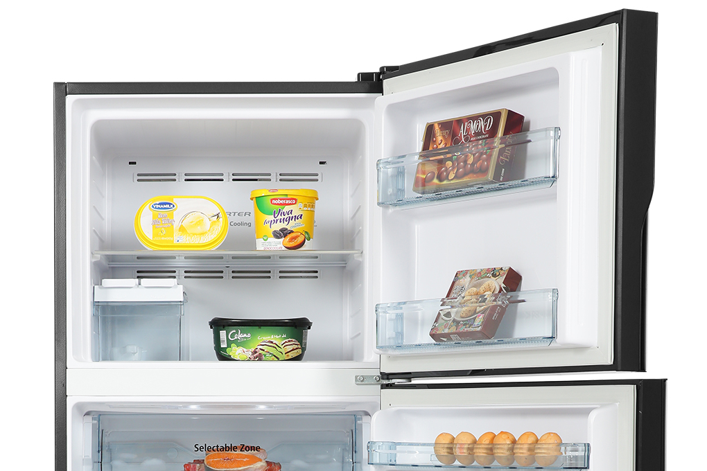 - Bên trong ngăn lạnh là các kệ cùng hộc tủ giúp sắp xếp và phân loại thực phẩm tiện lợi.