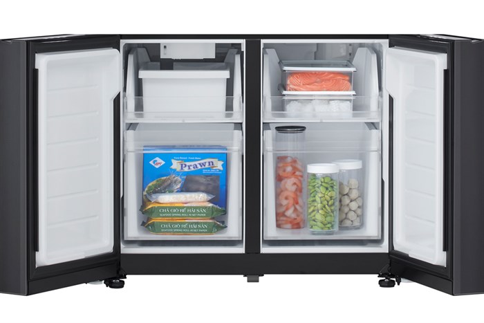 - Vì được thiết kế theo kiểu Multi Door nên bên trong tủ lạnh có nhiều khay đựng, ngăn chứa để bạn và các thành viên trong gia đình sắp xếp, phân chia thực phẩm cũng như đồ uống thuận lợi hơn.